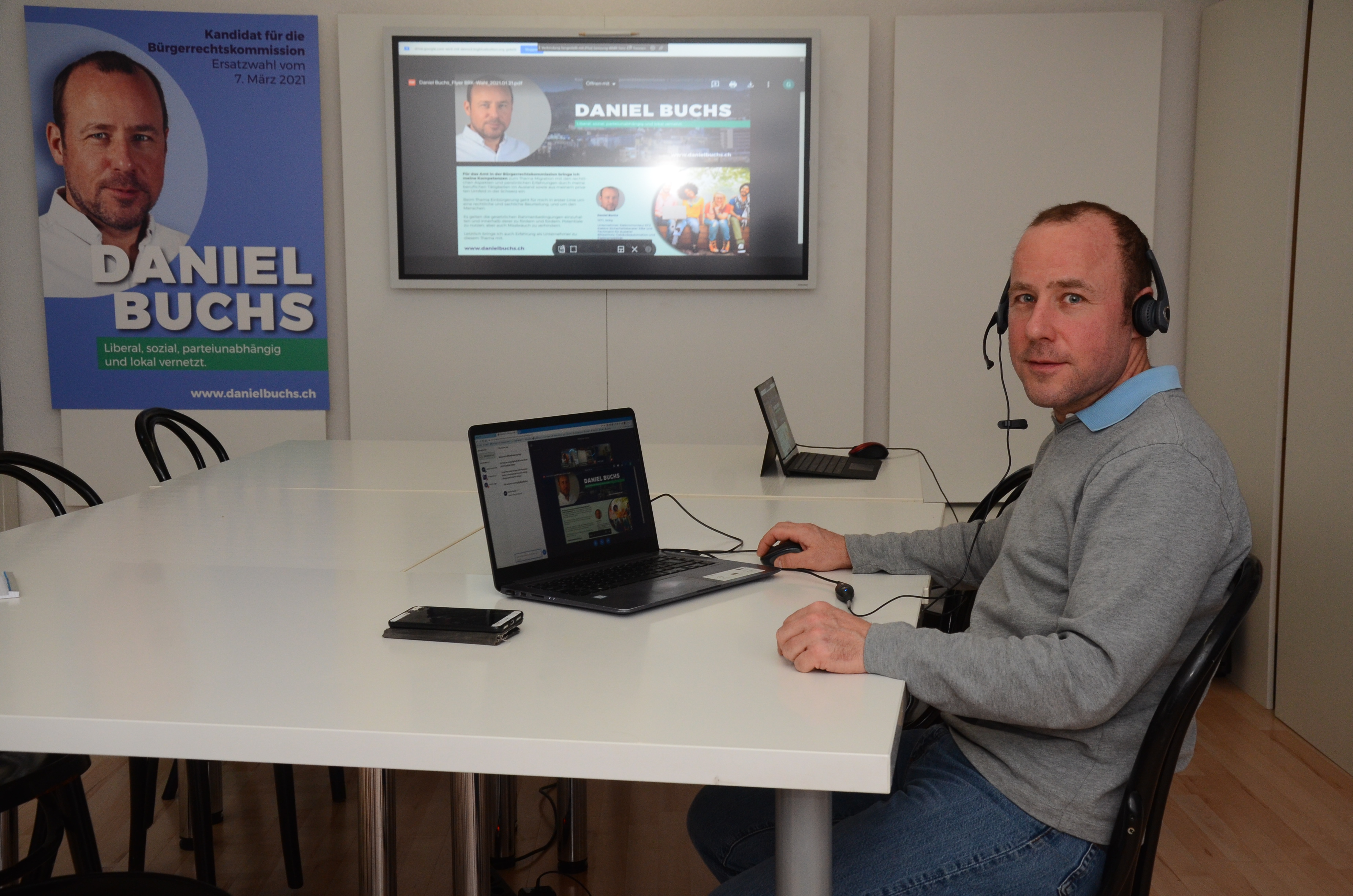 Weil Wahlveranstaltungen verboten sind, hat sich Daniel Buchs, Kandidat für die Bürgerrechtskommission, unlängst in einem stündigen Online-Hearing den Fragen interessierter Bürger gestellt.