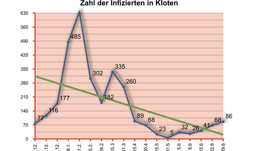 Die Zahl der Infizierten nimmt auch in Kloten zu, allerdings mit Faktor 17 deutlich stärker als im kantonalen Mittel, dessen Faktor lediglich um 4,4...
