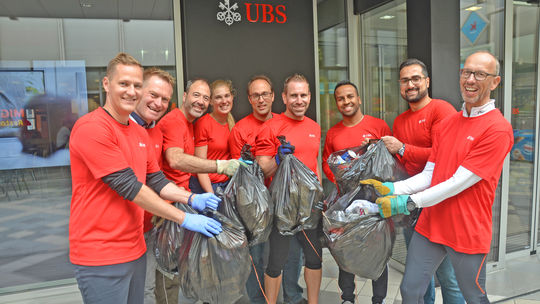 Rund 60 Kilogramm Abfall haben neun Angestellte der UBS Kloten in nur einer Stunde gesammelt. Es ist ihr Beitrag für eine saubere Stadt Kloten.
