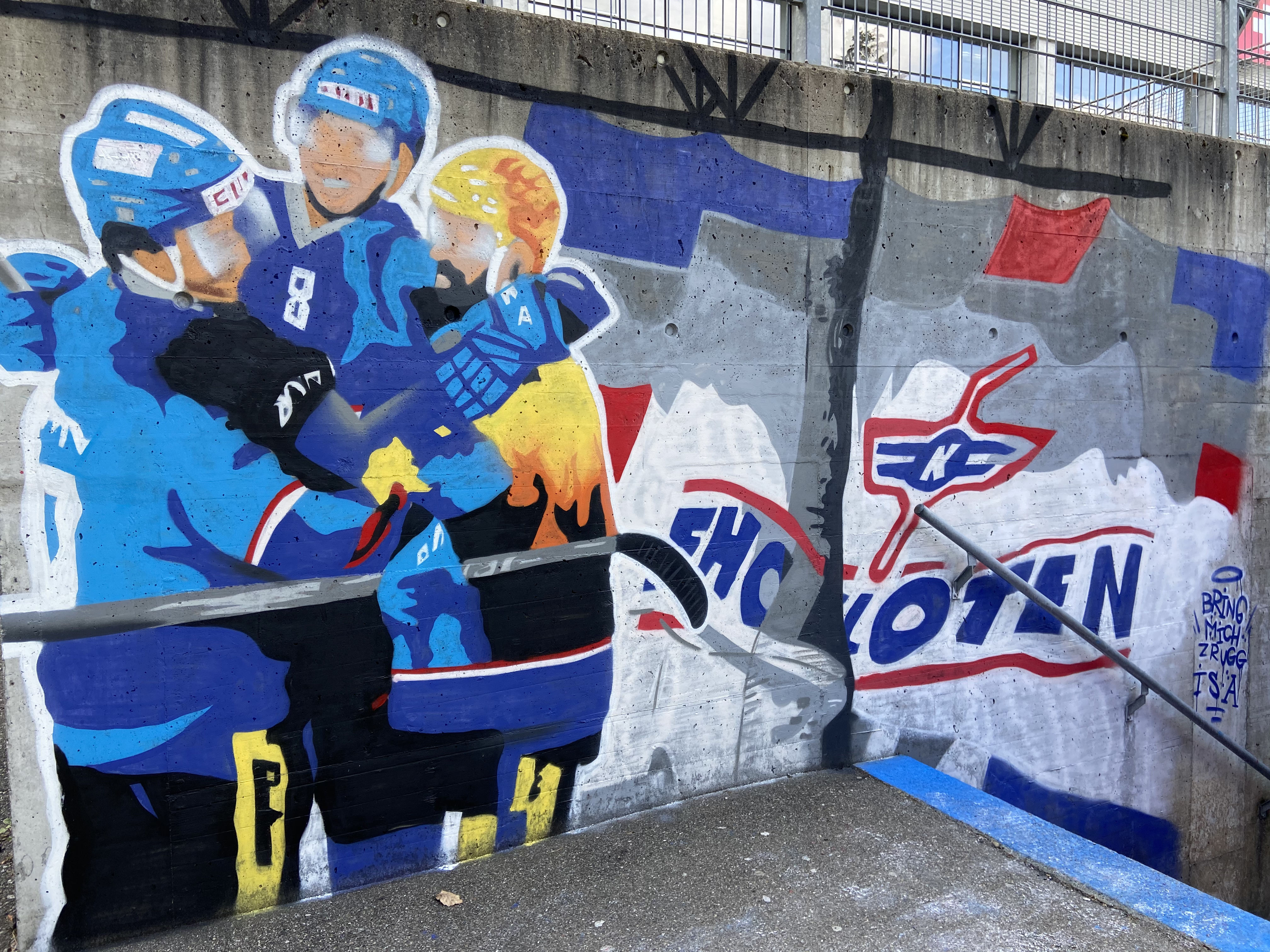 Unauffällig auffällig sind sie hingemalt, die EHC-Graffiti an den Wänden der Swiss Arena. Sie sind ein Statement an den Finalgegner und an die «Flieger».