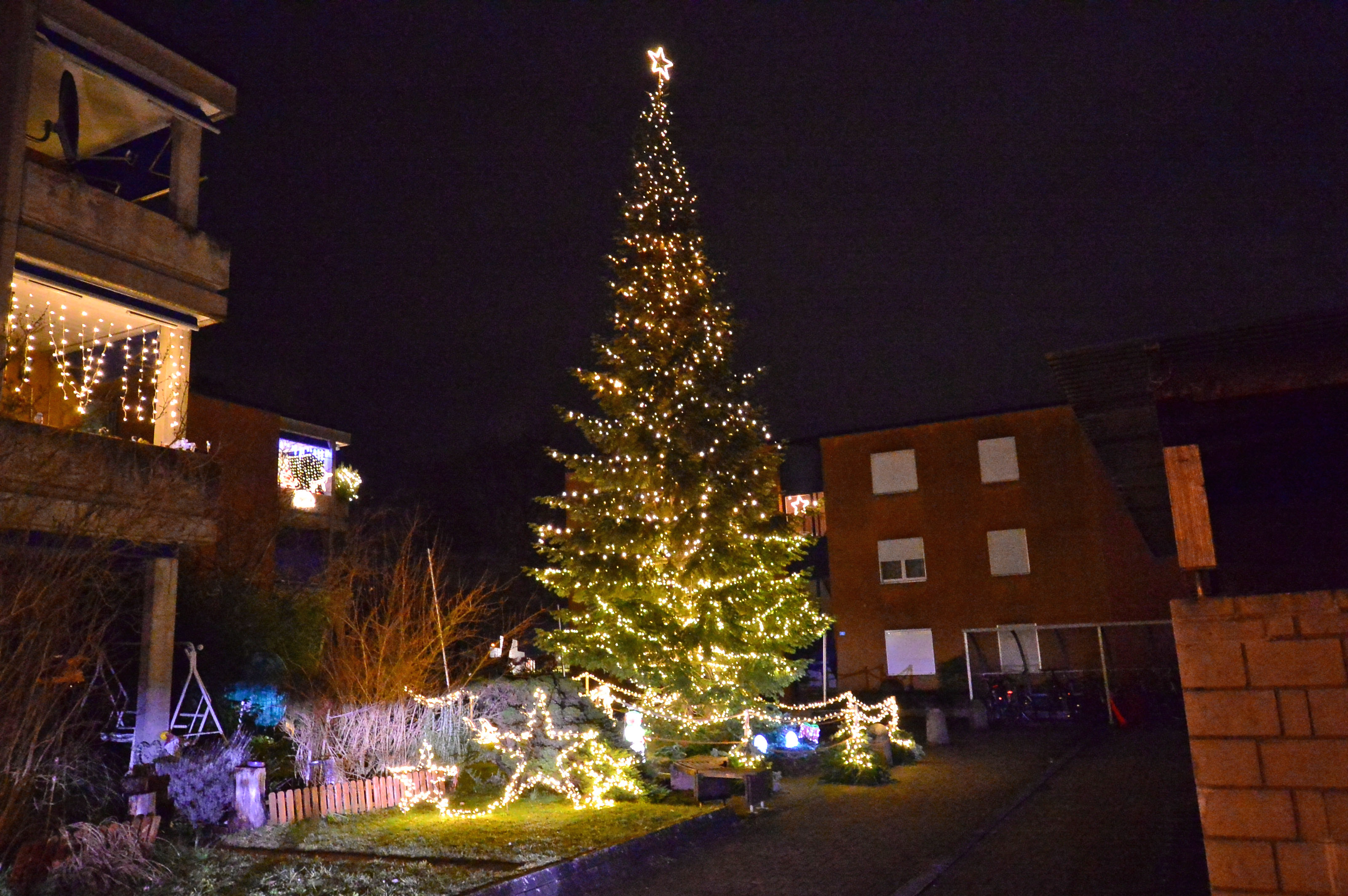 Mit unzähligen Lämpchen versehen und einem weit leuchtenden Stern auf ihrer Spitze kündigt die Tanne an der