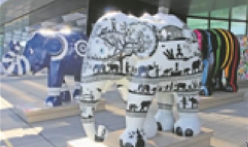Die Wanderausstellung «Elephant Parade» gastiert bis 11. Oktober am Flughafen Zürich. Neu dabei ist «Sky», designt vom «Circle»-Architekten Riken Yamamoto. «Sky» wird auch nach der Ausstellung dem Flughafen erhalten bleiben.