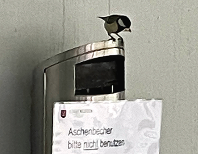 Trotz Spardruck: Wenn tierische Gäste ein Zuhause benötigen, dann sind die Verantwortlichen der Schluefweg-Anlage auch grosszügig. Jüngstes Beispiel: Ein Kohlmeisen-Paar nistet im Aschenbecher beim Eingang zum Hallenbad. Dabei wird das Vogelpaar bei der Aufzucht ihres Nachwuchses mit einem unübersehbaren Hinweis vor Störern geschützt.