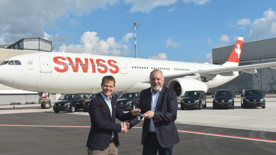 Der 21. März war ein grosser Tag für die Hirsch Ruckstuhl AG in Kloten, die sieben neue Mercedes-Benz EQV zum Flughafen fuhr. Sie helfen der Swiss, am Boden klimaneutral zu werden.