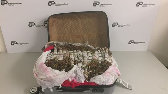 Dem Zoll und der Kantonspolizei ist es am Sonntagabend im Flughafen Kloten gelungen, einen Mann zu verhaften, der zwei Koffer mit rund 36 Kilogramm Khat einführen wollte.Der 42-jährige Niederländer...